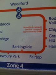 Until yesterday, Flickr's photo pages had a little bit of text in the bottom right, 'Place this photo on a map'. and taking this photo got me thinking about that. 'A' map. Not 'the' map. I was on the tube at the time of taking that photo, so I have no GPS fix for it. But even if I had one, it wouldn't be meaningful. I want to place that photo on the tube map, because that's where I was, between stations.
